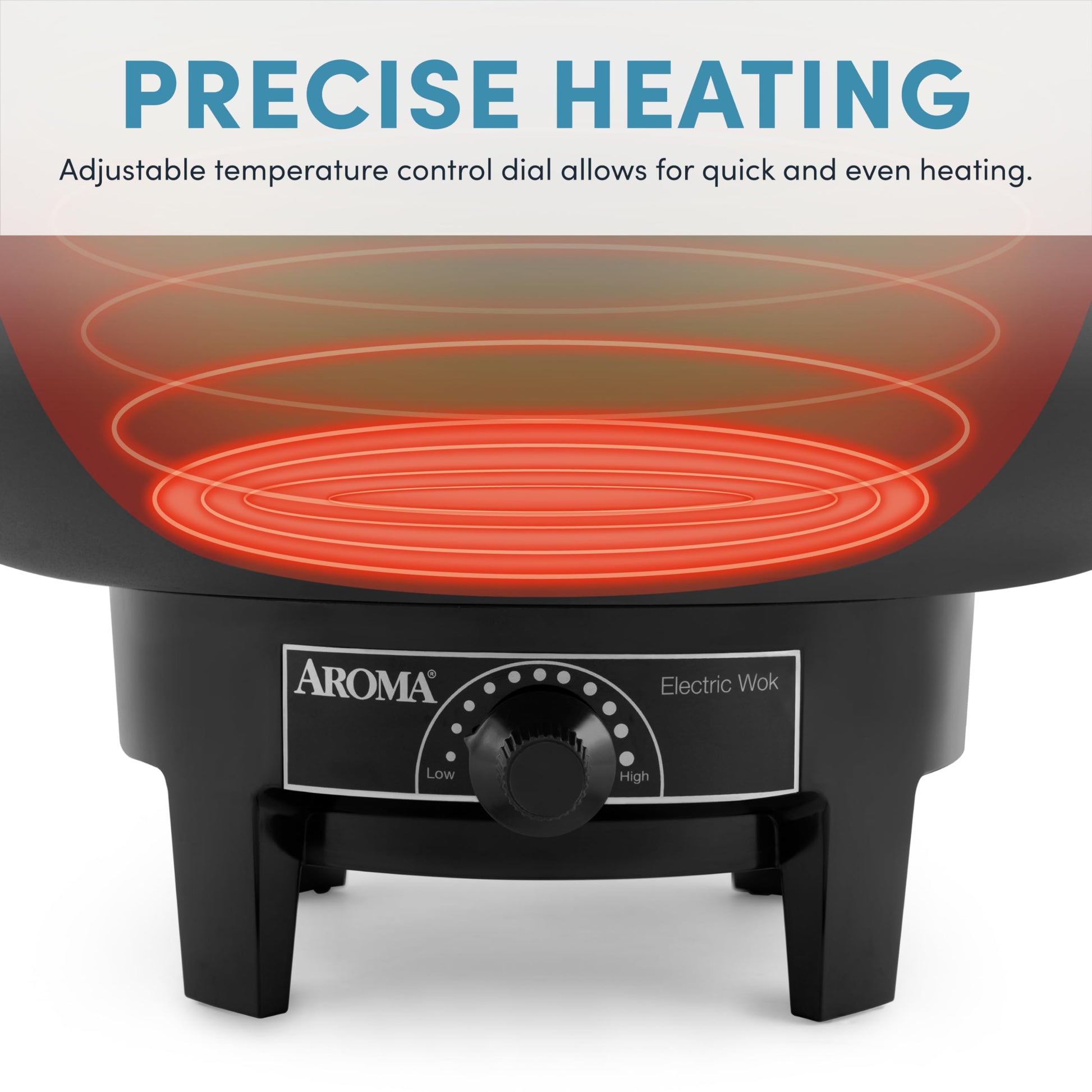 Aroma Housewares AEW-306 Electric Wok with Tempered Glass Lid Easy Clean Nonstick, Cooking Chopsticks, Tempura and Steaming Racks, Professional Model, Black
