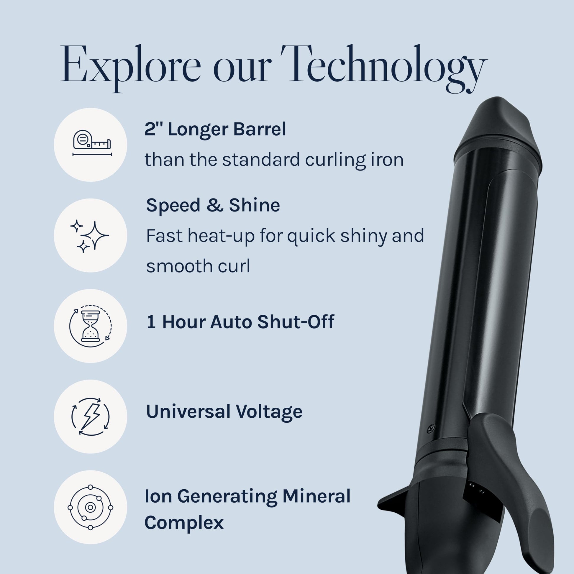 | Product Benefits | The 1.25" curling iron helps create large soft curls and waves. The extended longer-than-average hair curler barrel, makes it easier to style long hair or the back sections on shorter hair. It also features a ceramic coating to add shine See more |