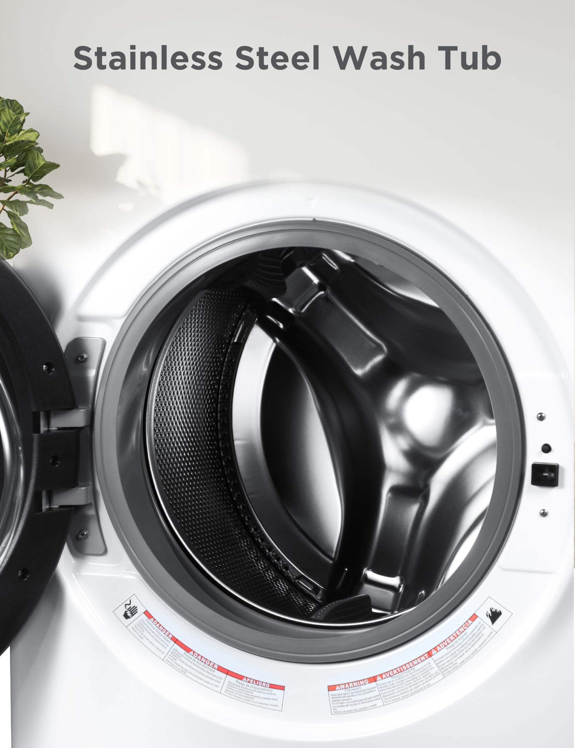 - Stainless Steel Tub: Our 0.9 cu. ft. portable laundry machine features a durable, rust and corrosion-resistant stainless steel wash tub with top loading transparent quiet-close lid to view contents.