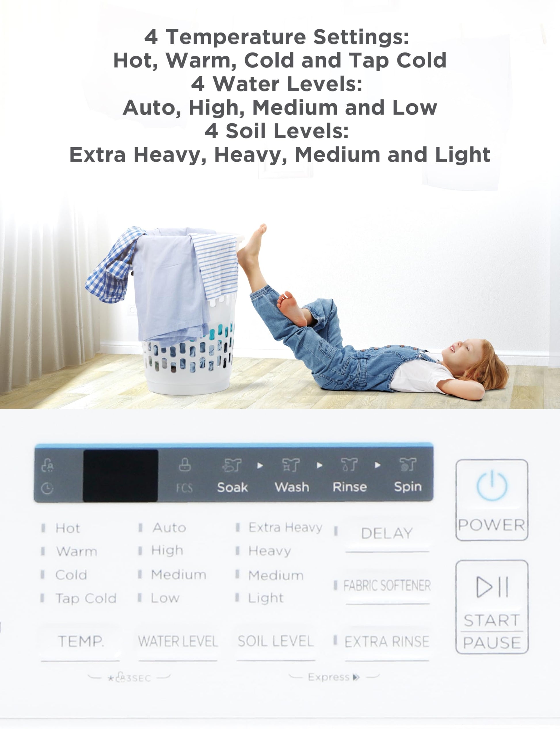 - Safety Features: Our small washing machine features auto unbalance detection to ensure laundry is cleaned at peak performance, as well as auto shutoff safety features and child lock protection.