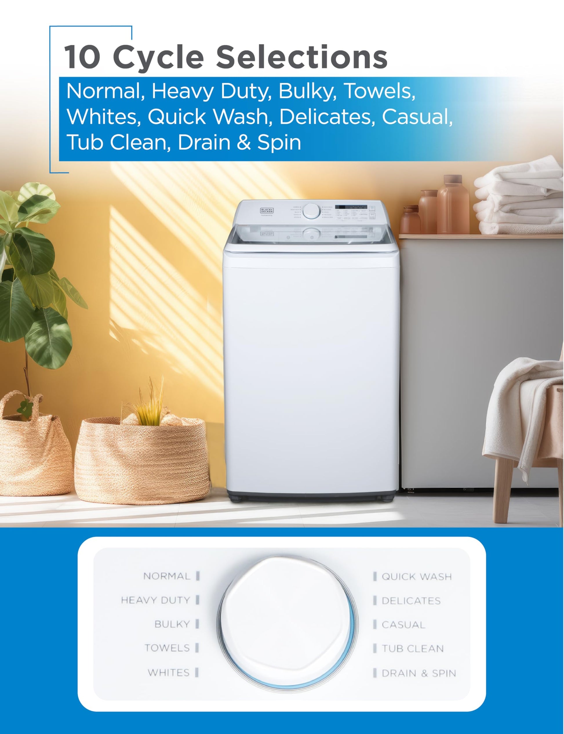 - Multiple Wash Cycles: Wash your laundry at home with this Black and Decker portable washer. Our portable clothes washer has 5 cycle selections: Heavy, Gentle, Normal, Rapid, and Soak.