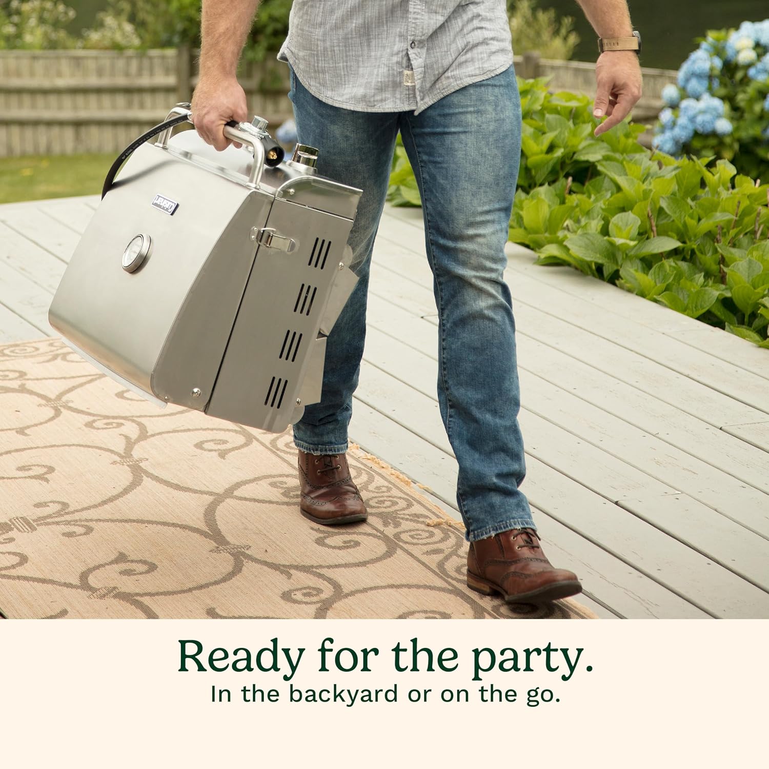 - STAINLESS STEEL GRATES: Experience the performance of a full-sized BBQ grill in a compact form. The stainless grates deliver even heat distribution, making it the perfect camping grill for large cuts of meat or delicate foods