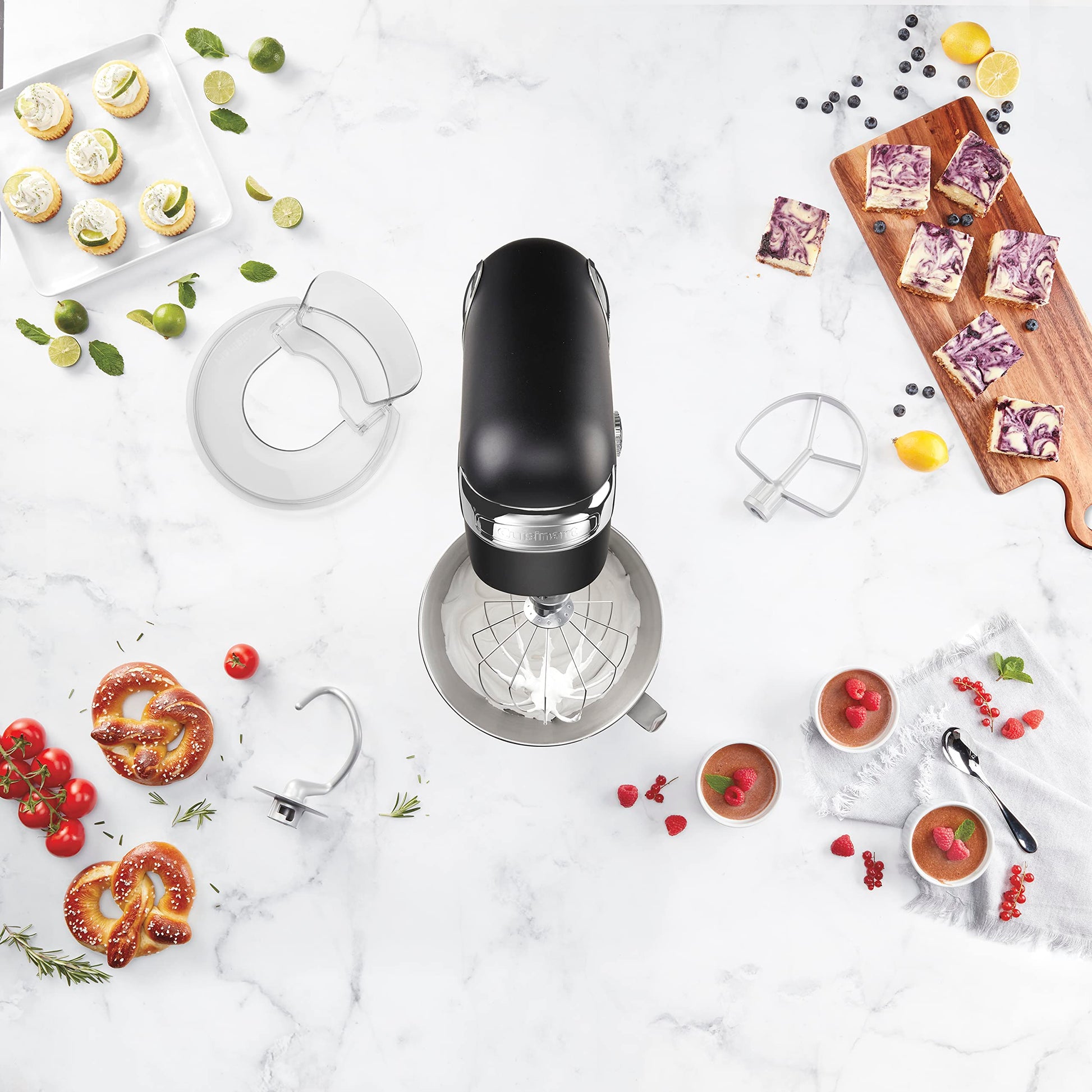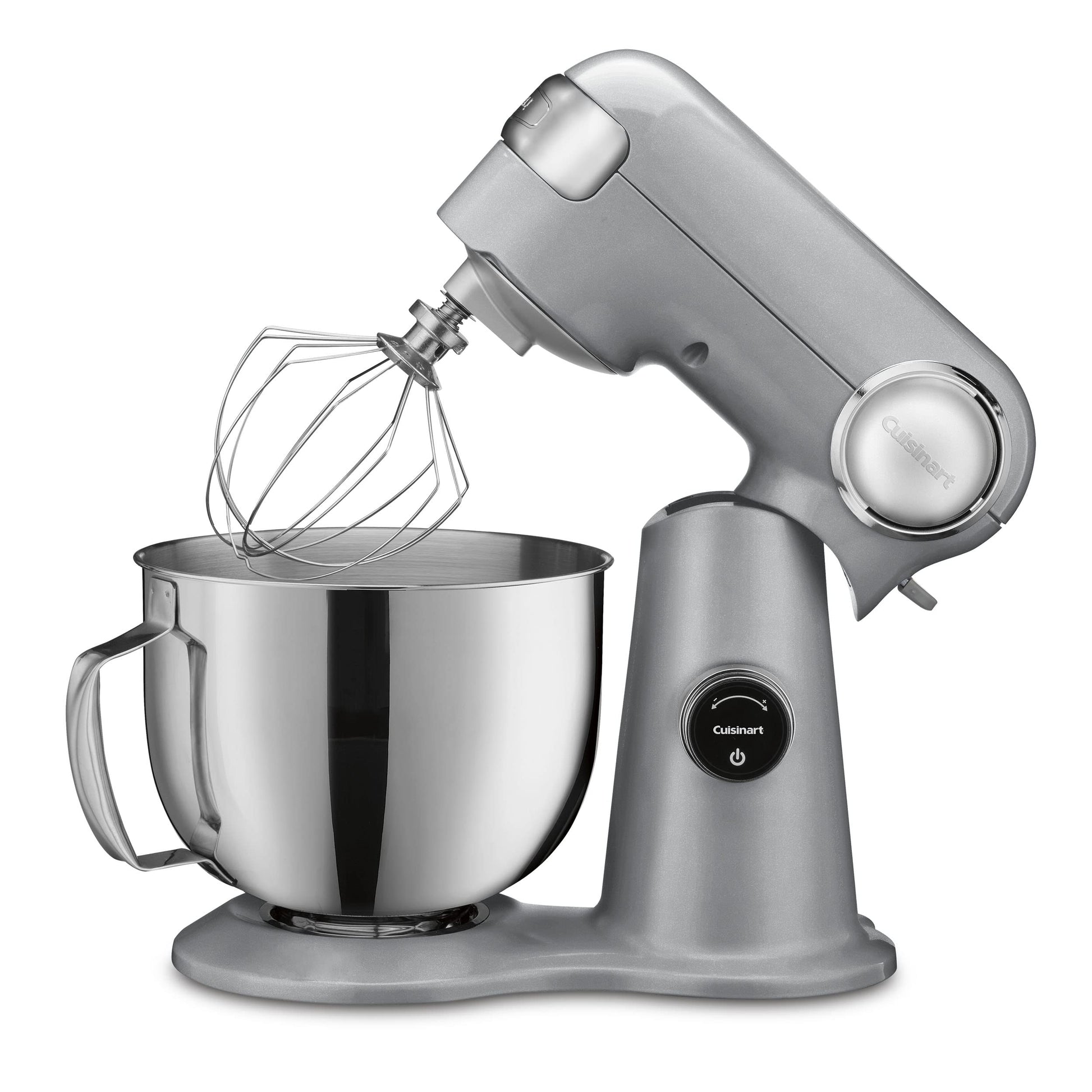 Cuisinart Stand Mixer, 12 Speeds, 5.5-Quart Mixing Bowl, Chef's Whisk, Flat Mixing Paddle, Dough Hook, and Splash Guard with Pour Spout, Silver Lining, SM-50BC, Silver Lining
