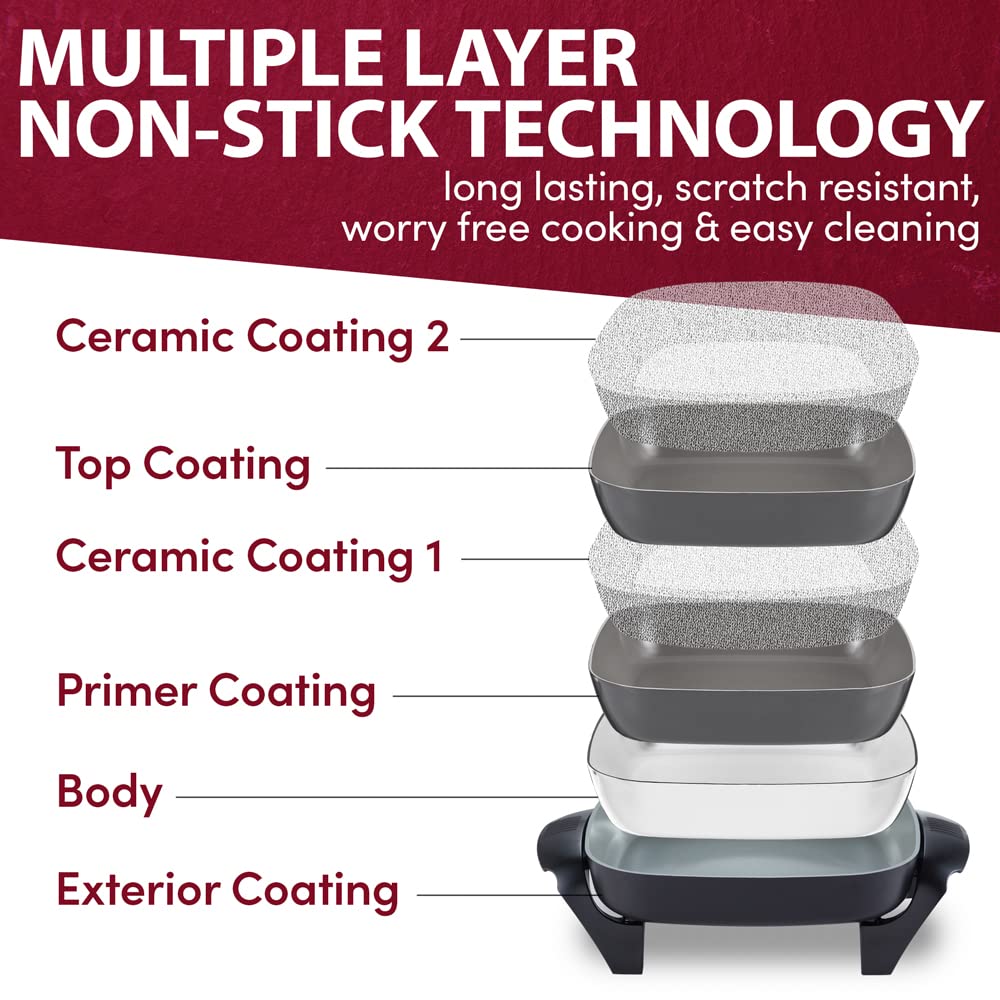 Elite Gourmet EG-6203# Extra Deep 16"x13"x3.2" (10.5Qt.) Scratch Resistant, Easy Pour Spout Dishwasher Safe, Non-stick Electric Skillet with Glass Vented Lid, Adjustable Temperature, Black