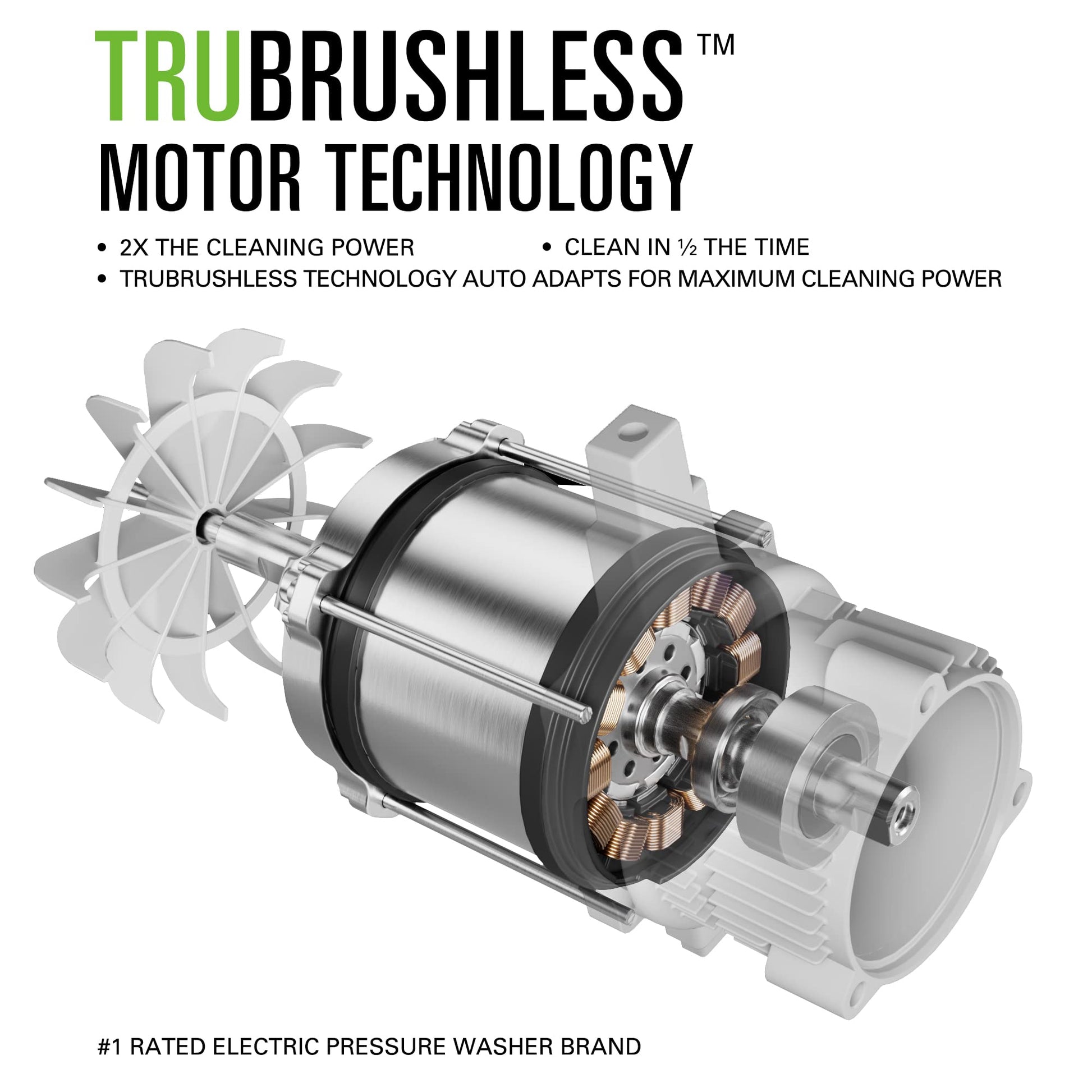 - TRUBRUSHLESS MOTOR : Powerful 14 Amp TruBrushless motor generates 3000 PSI and 2.0 GPM for maximum cleaning power.Cleaning Units 3300 C.U. Maximum Inlet Water Temperature 104°F (40°C).