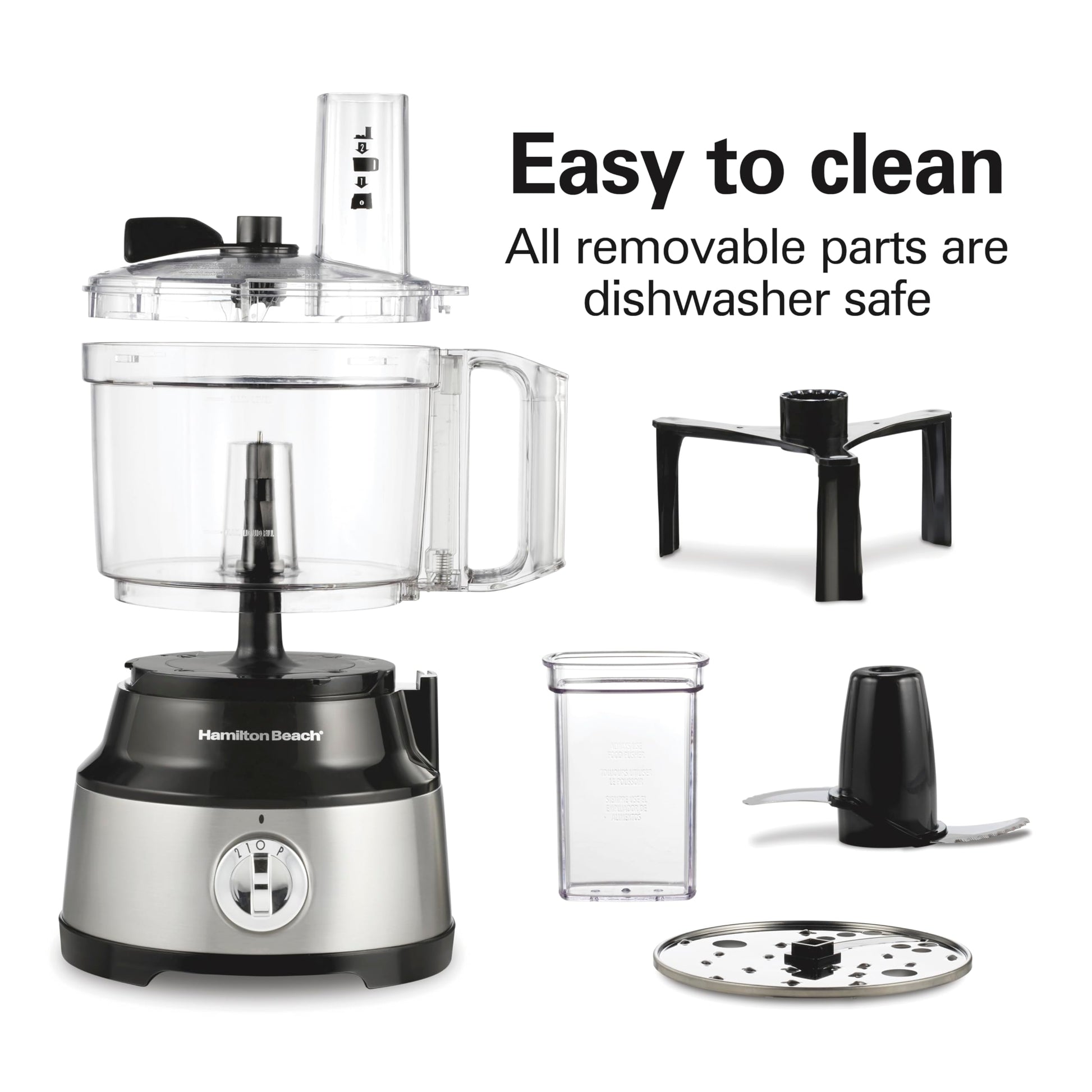 Hamilton Beach Food Processor & Vegetable Chopper for Slicing, Shredding, Mincing, and Puree, 10 Cups + Easy Clean Bowl Scraper, Black and Stainless Steel (70730)