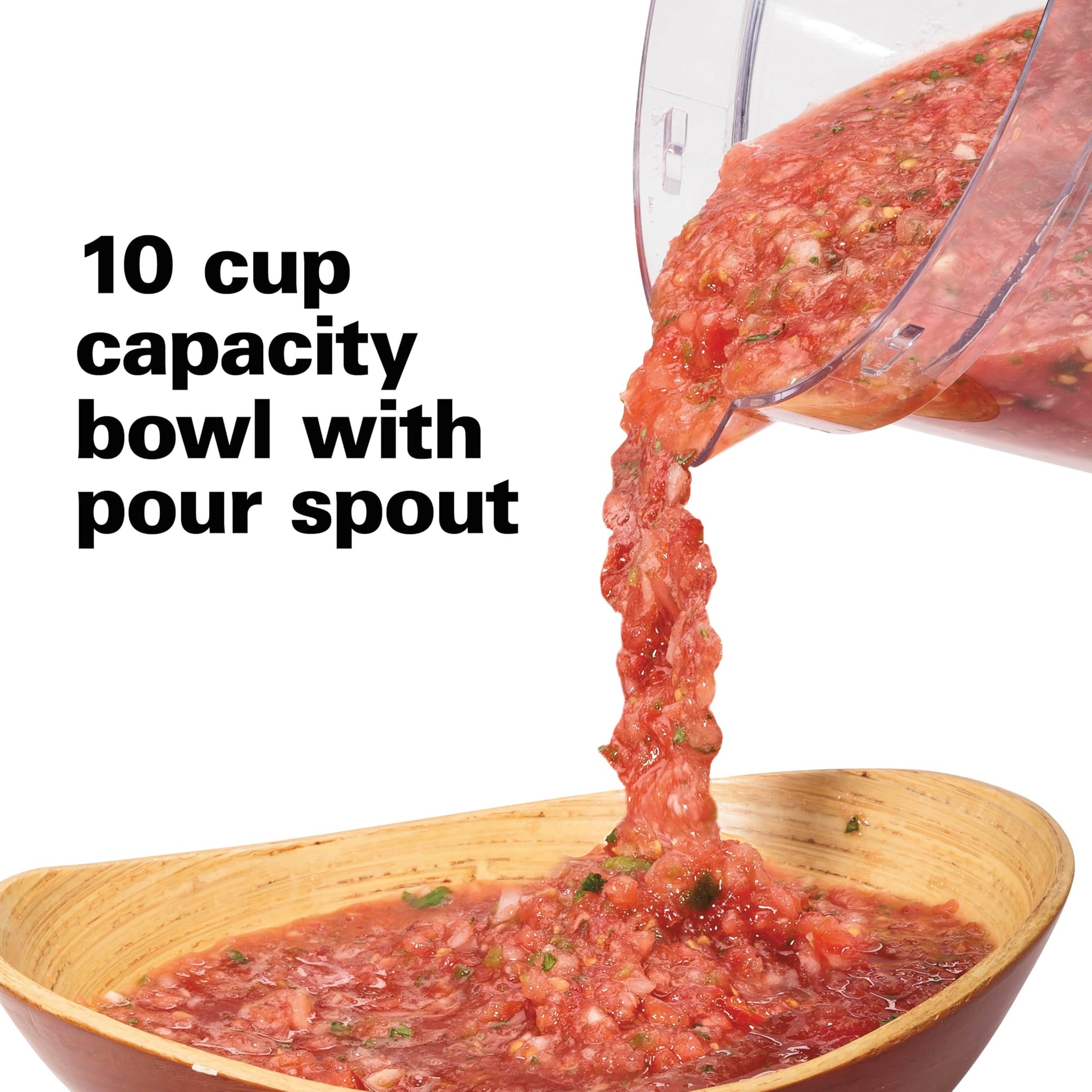 - 10 CUP BOWL CAPACITY: The generous 10 cup bowl fits a large volume of food. The large 3" x 1.75" feed chute saves time by reducing the need to pre-cut food - making it an essential electric vegetable chopper and slicer tool in your kitchen.