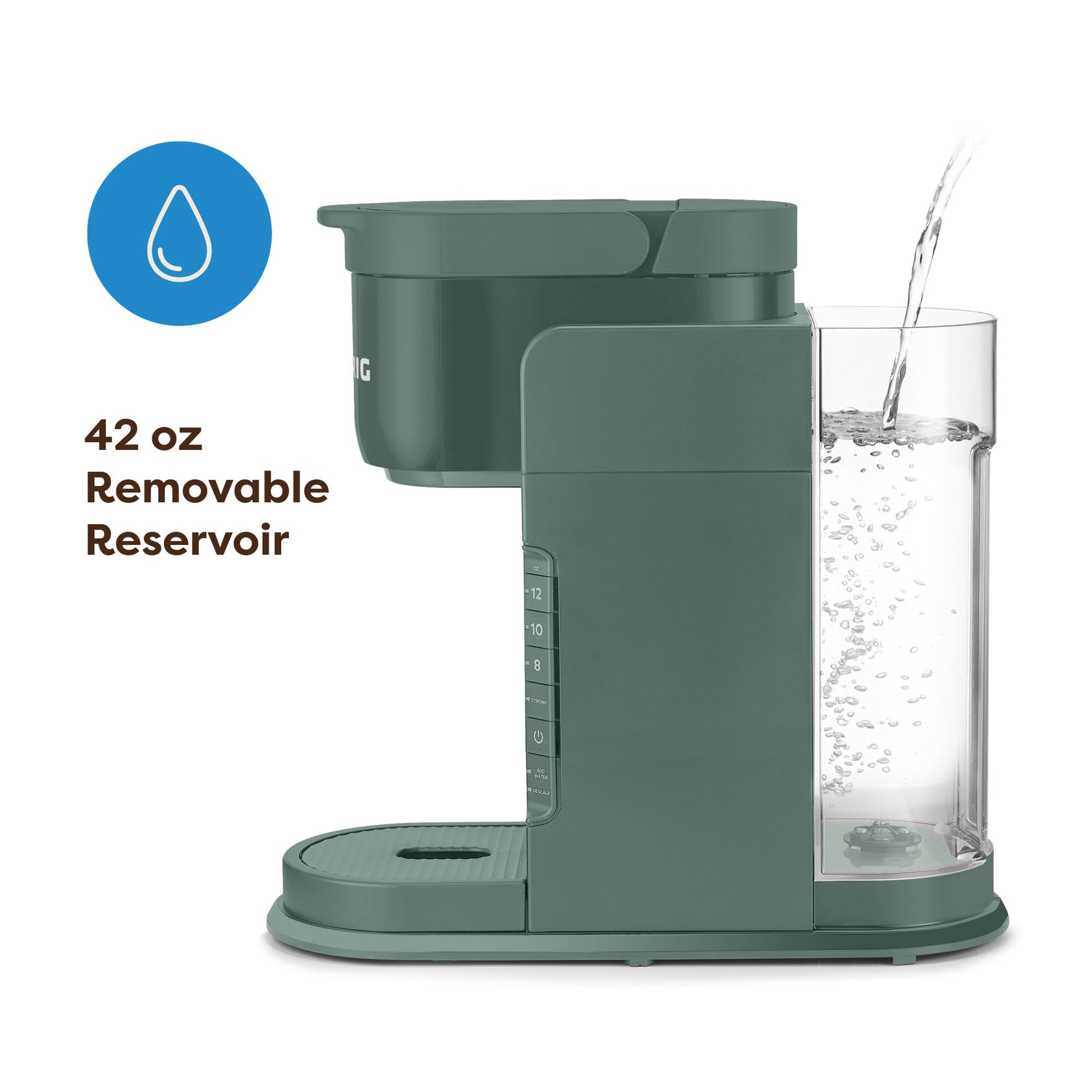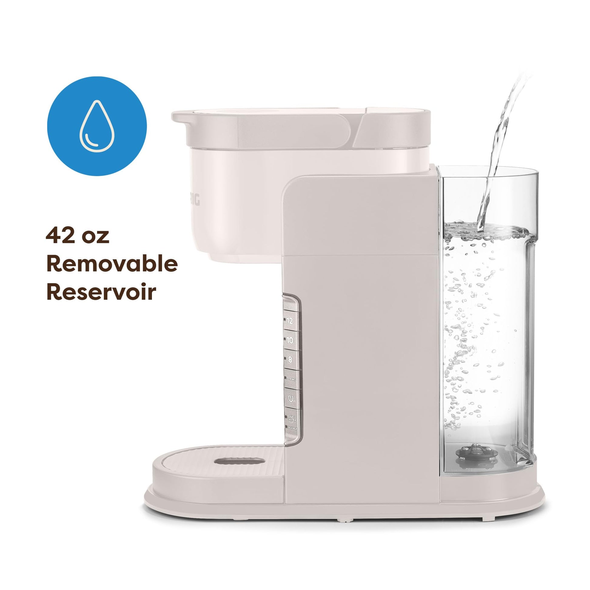 - MULTIPLE CUP WATER RESERVOIR: 42oz. removable reservoir lets you brew up to 4 cups before refilling. 8 oz. cup size
