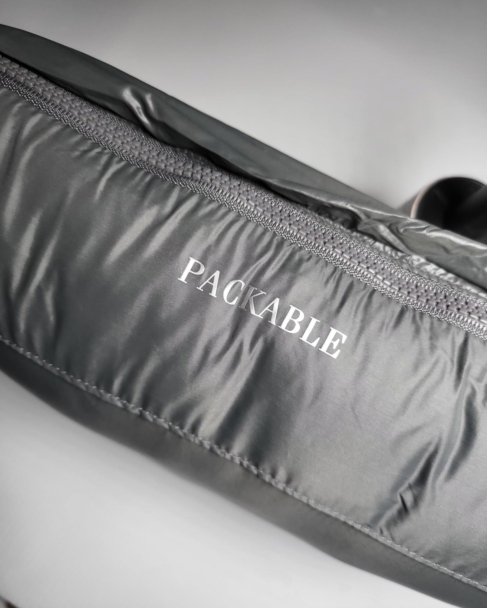 - Two front waist zip pockets. Packs into the right pocket, which features a carrying loop and "Packable" print. Drawstring hem. Fully lined and filled. Signature Pony embroidered at the left chest and printed at the packable bag.