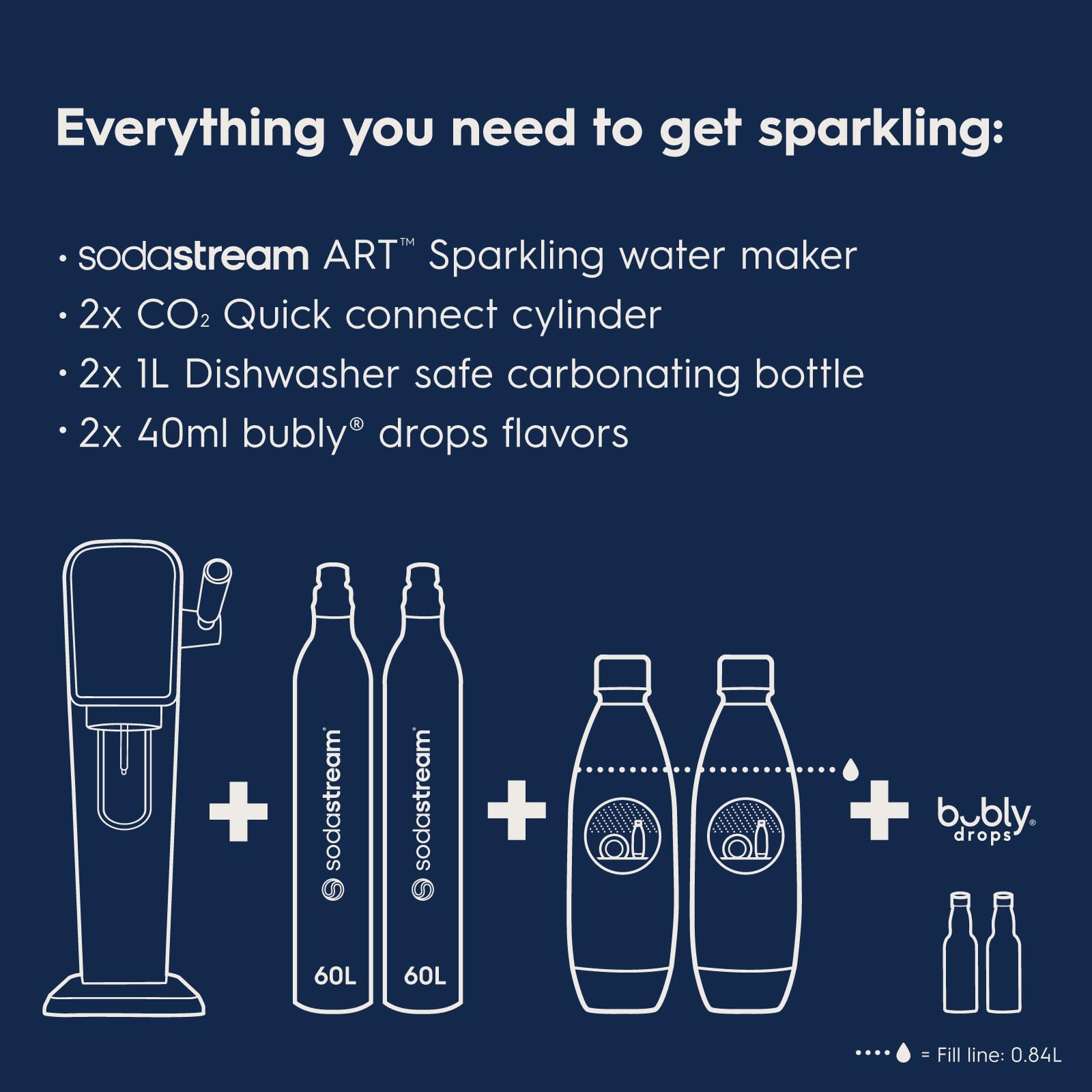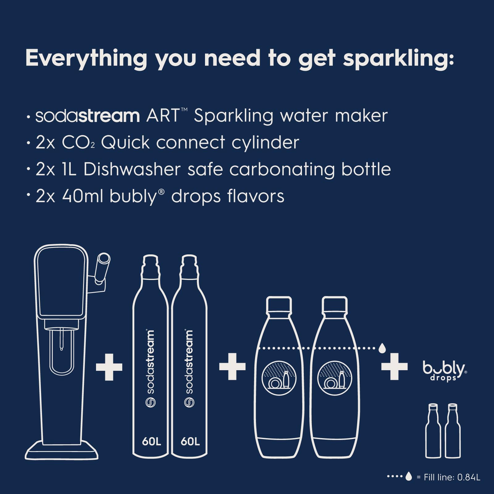 SodaStream - ART Sparkling Water Maker | VALUE BUNDLE | CQC CO2 system | Includes 2x CO2 Cylinders, 2x 32 Fl Oz Dishwasher Safe Bottles, 2x Bubly Flavor Drops | Combine with Pepsi Flavors | Black