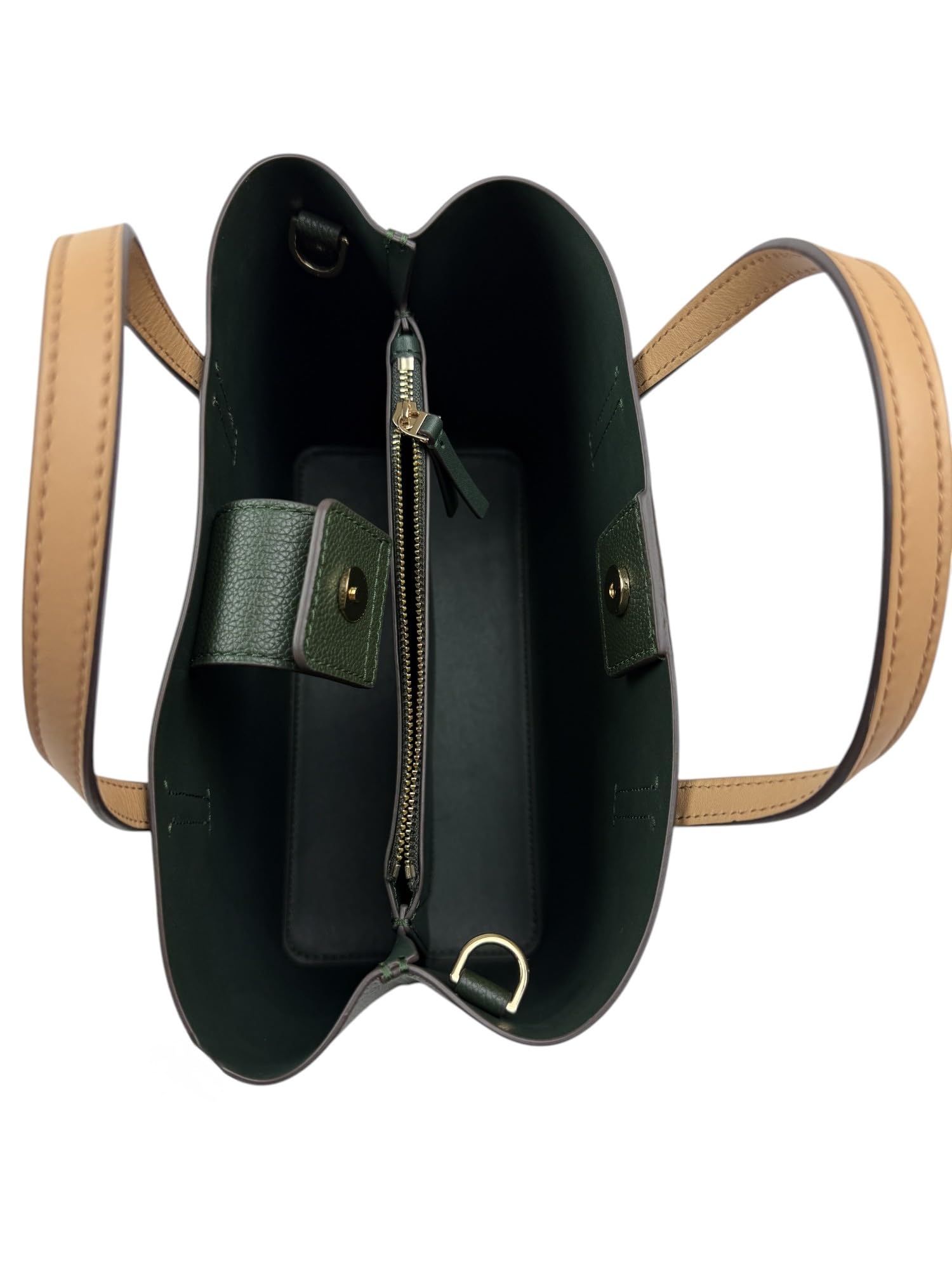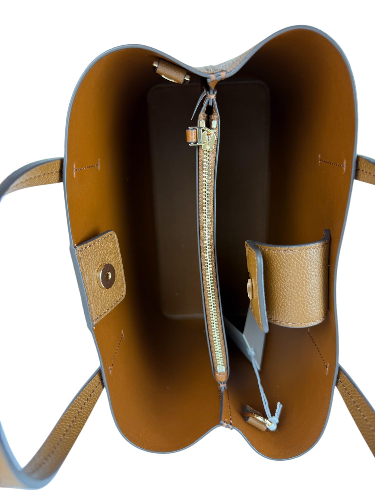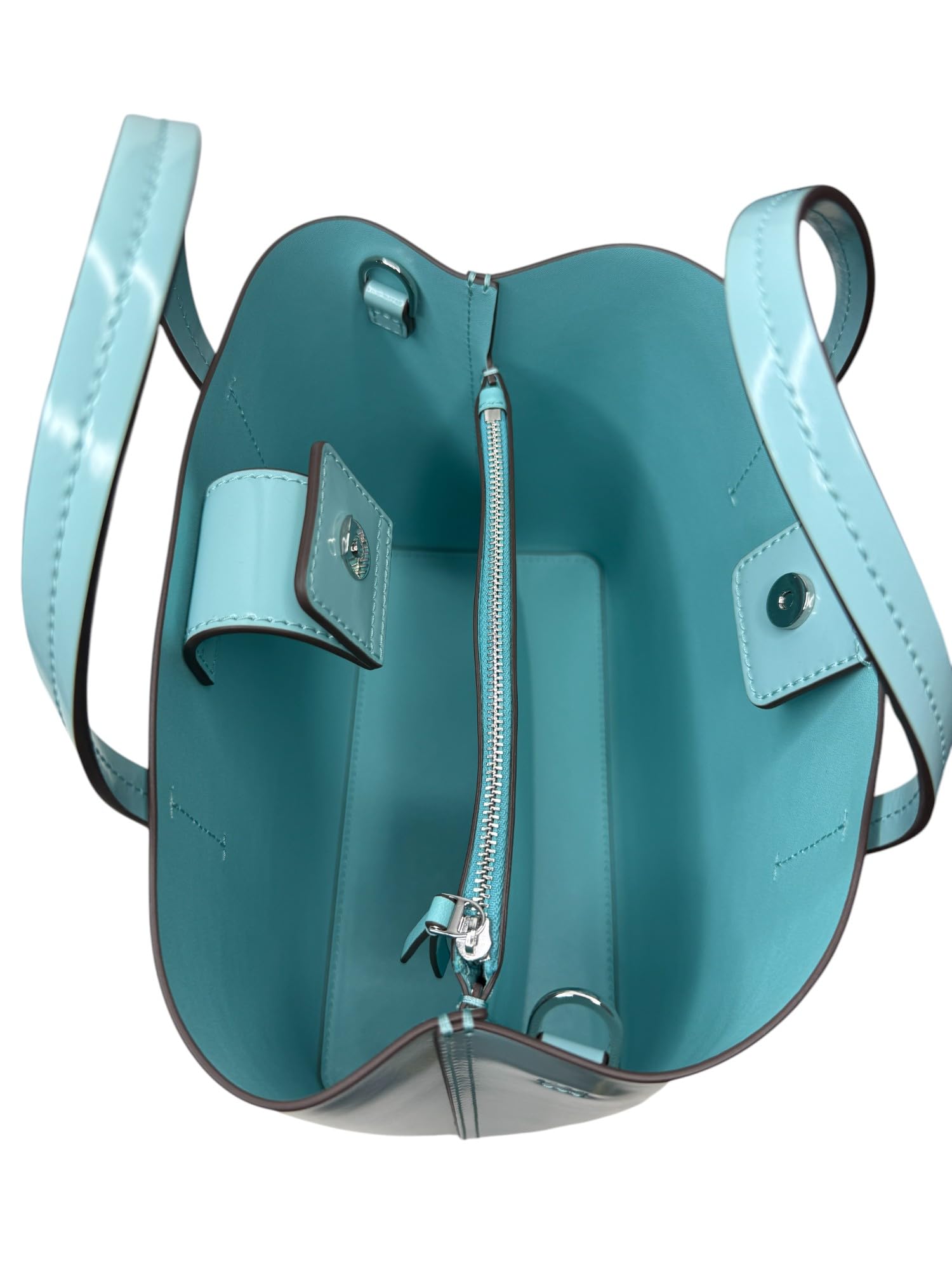 - Tory Burch Women's Blake Small Tote Bag With Detachable/Adjustable Crossbody Strap Approximate Measurements: 10 in L x 8 in H x 4.5 in W Center Snap button closure and 1 center zip compartment