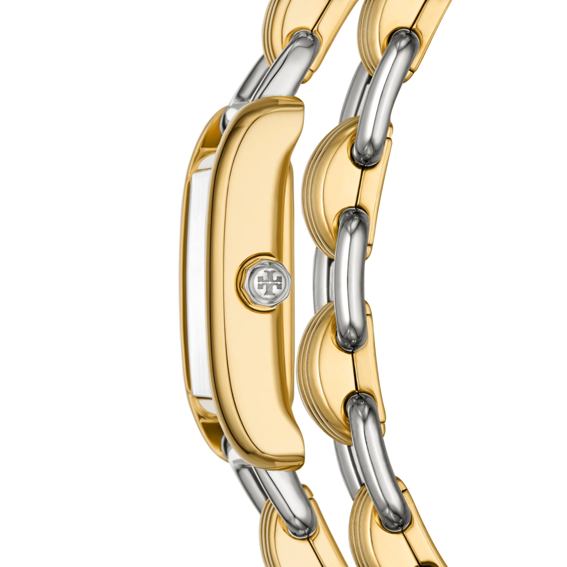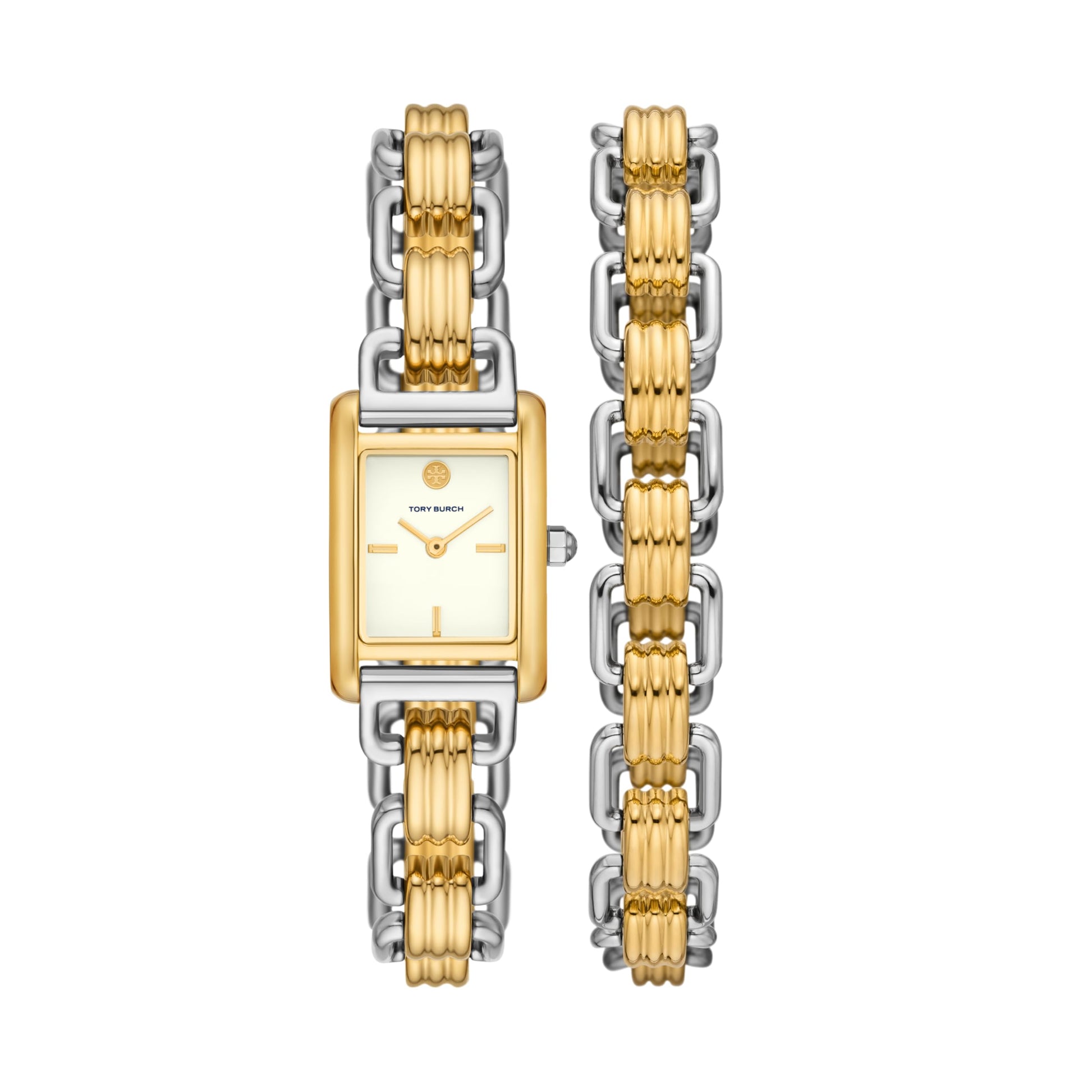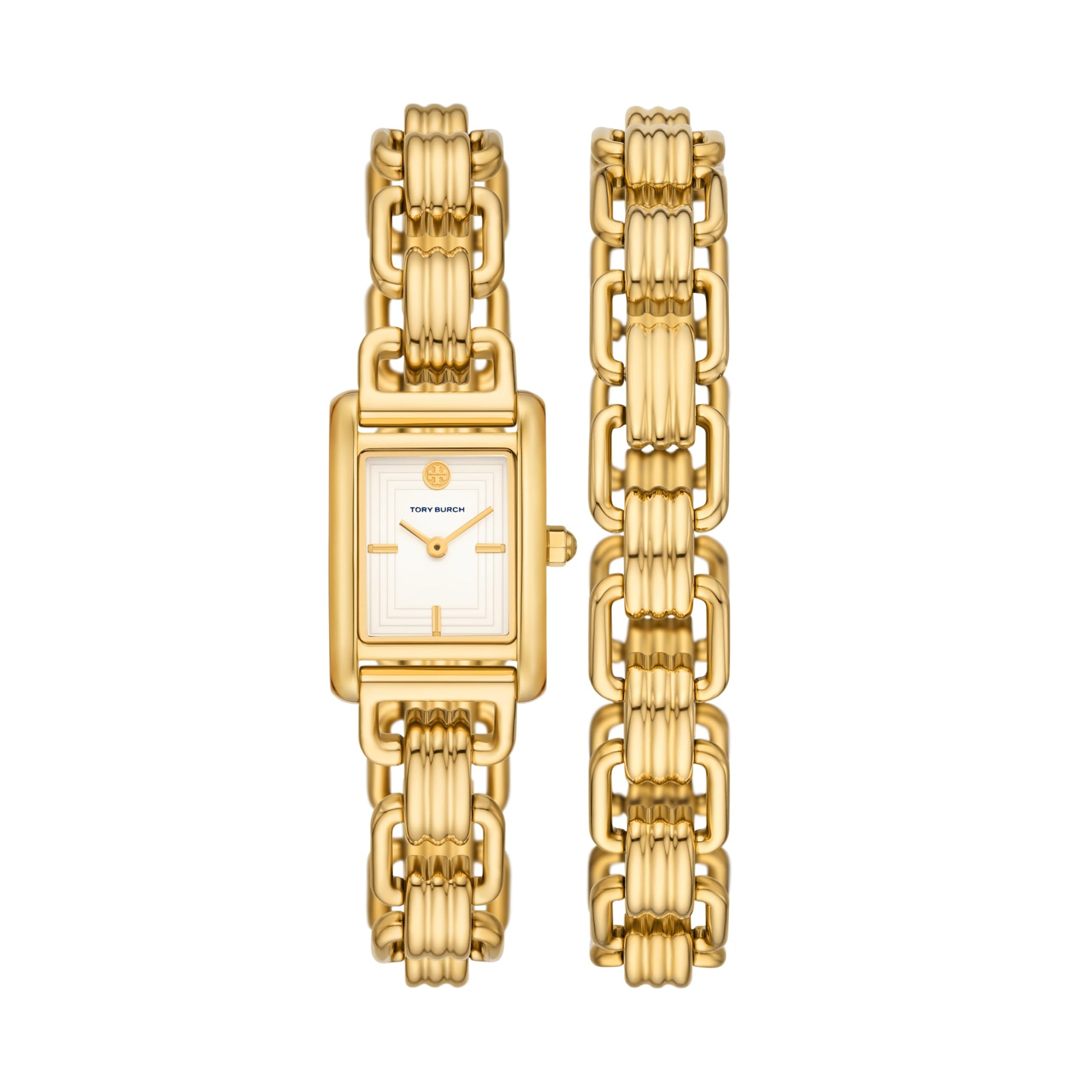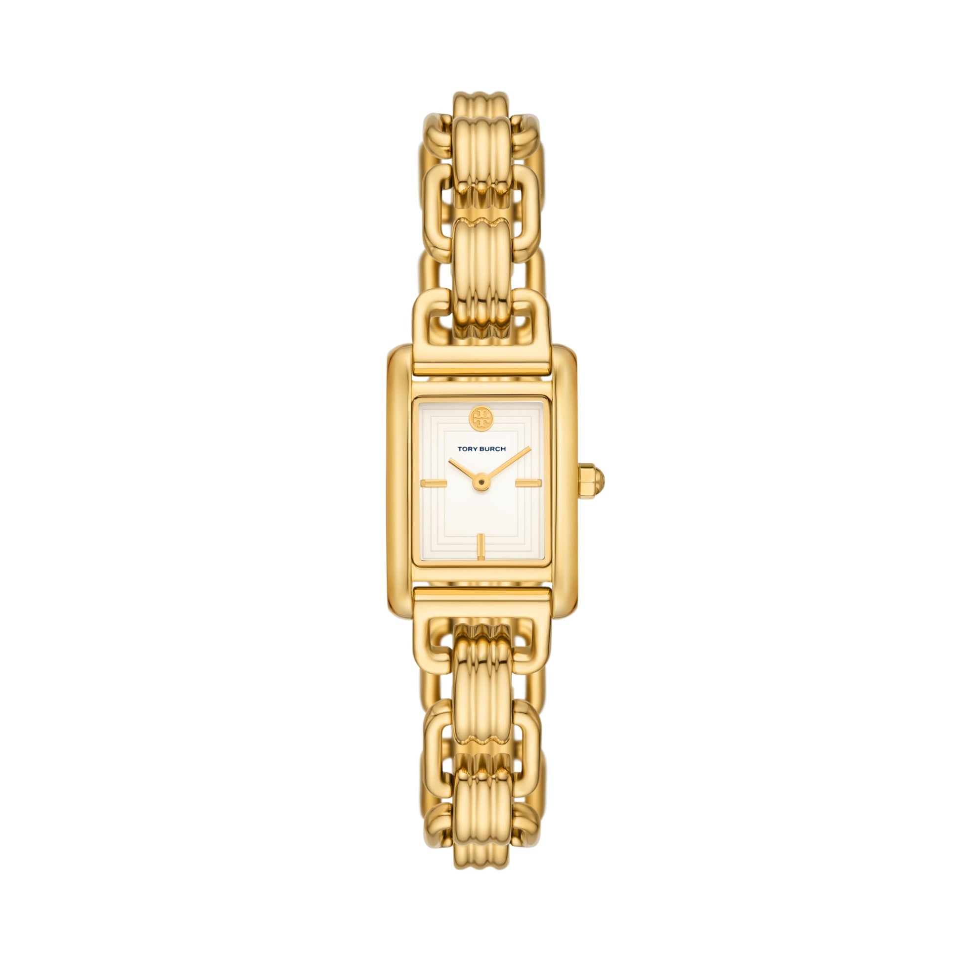 - Clean-lined and elegant. The Eleanor small watch features a geometric case, Double T clasp and classic link bracelet in gold-tone stainless steel.