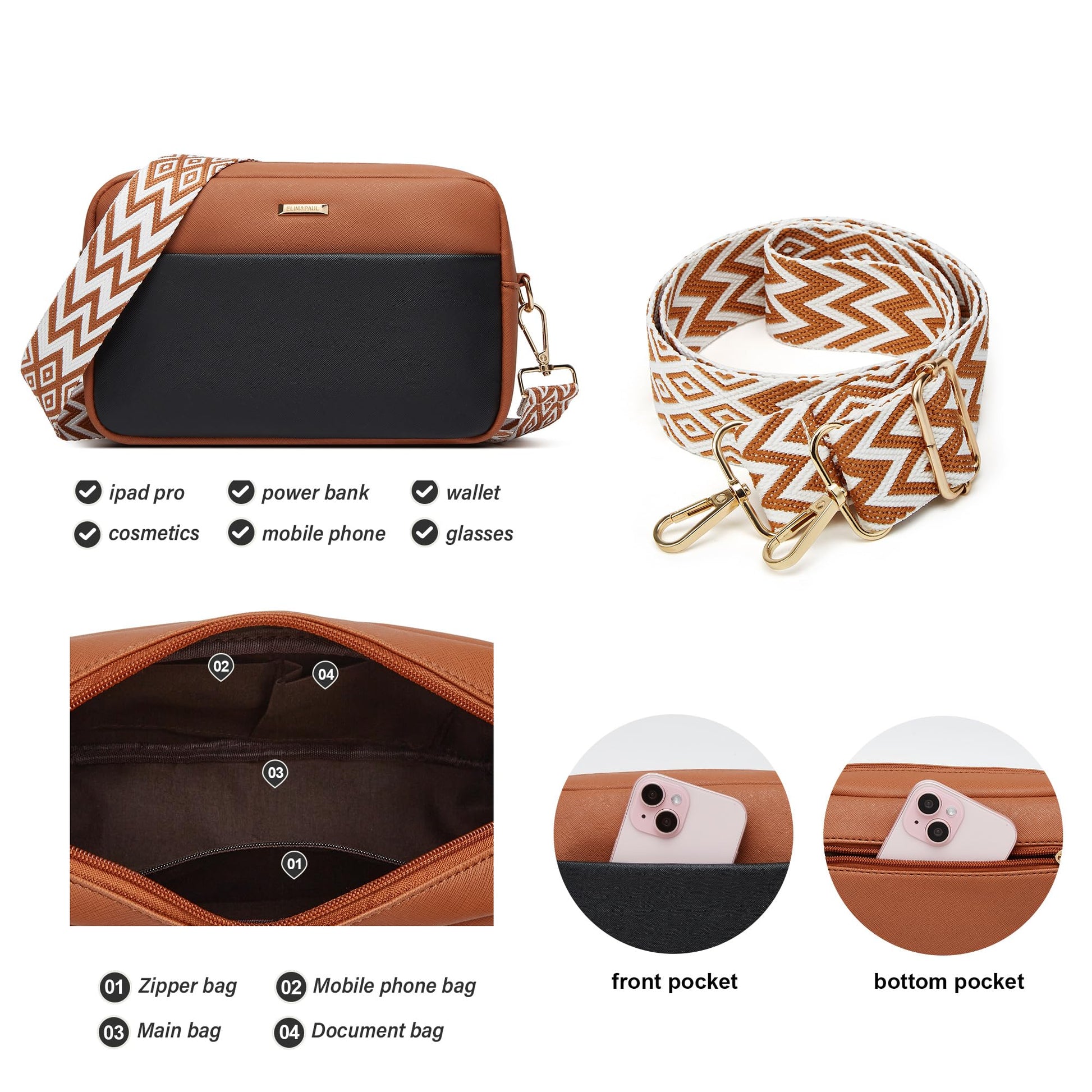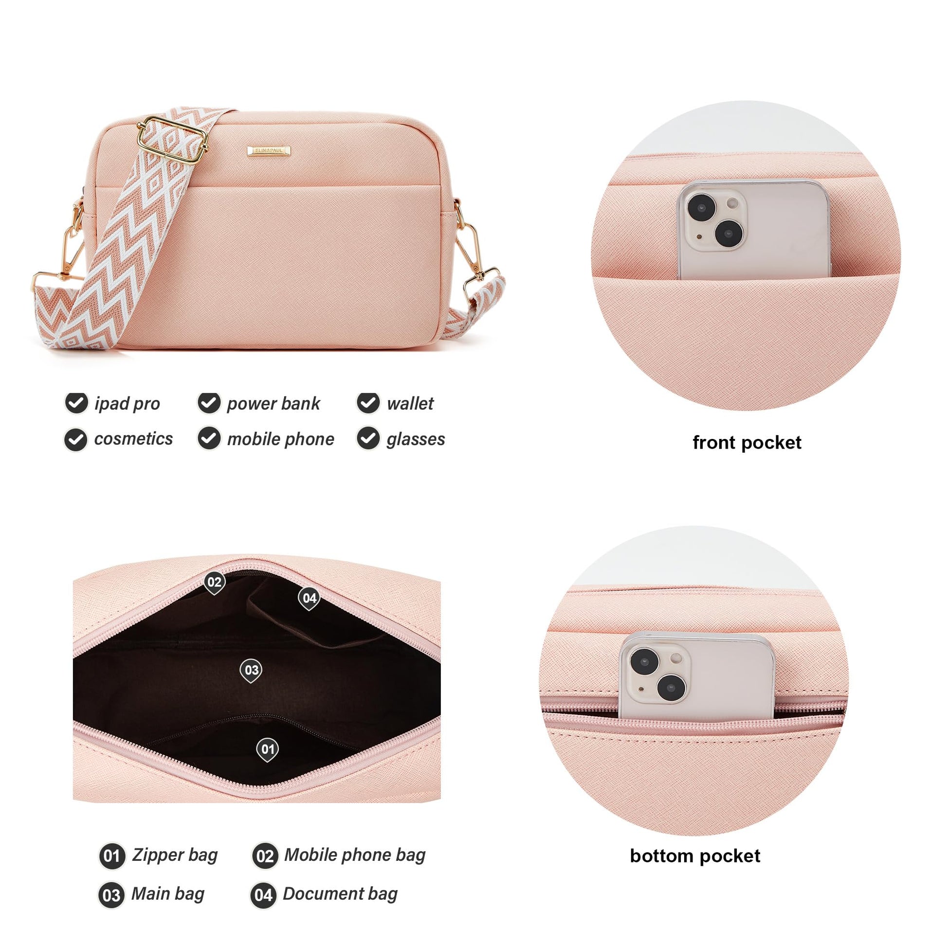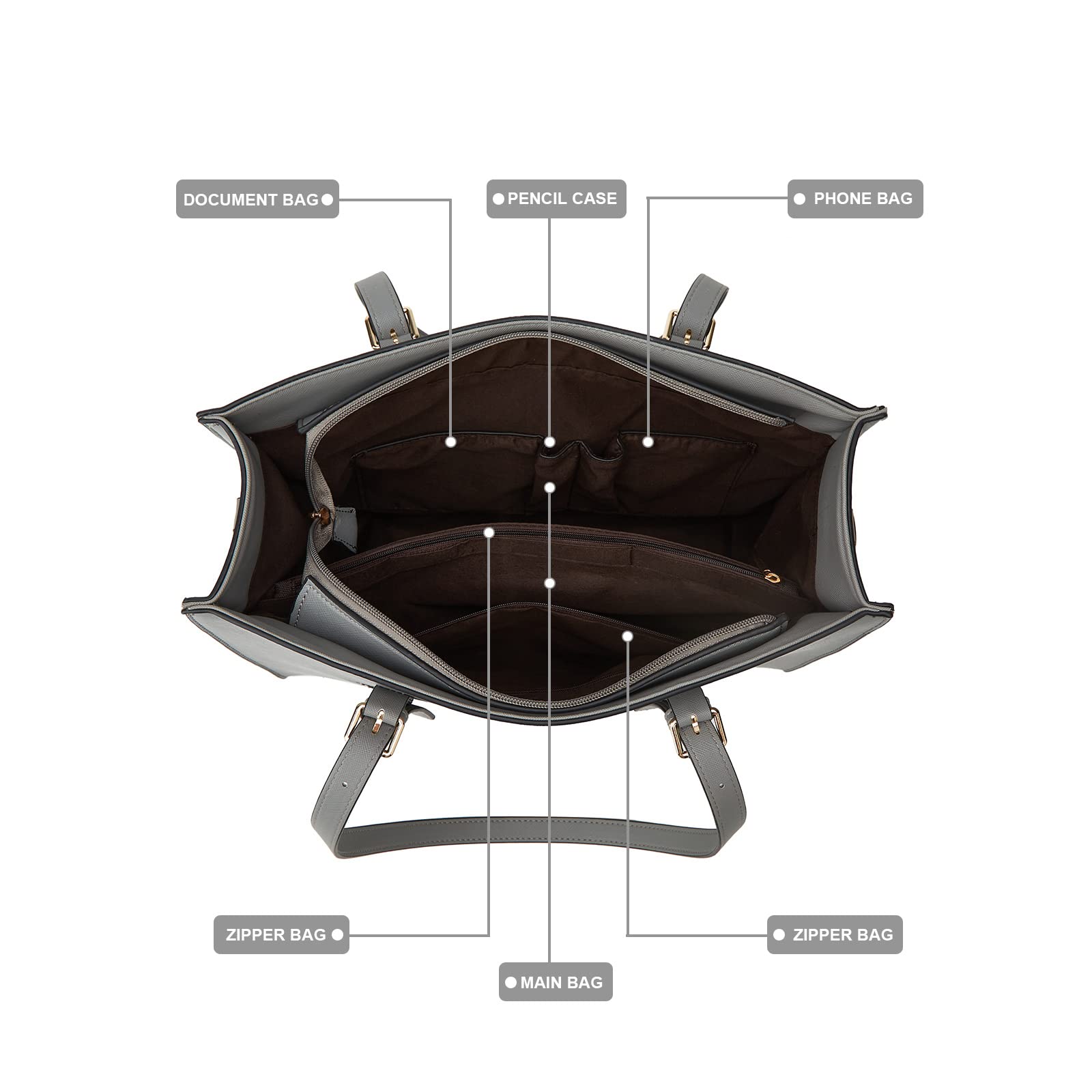 - Structure:Large Handbag:1* Inner Zipper Pocket+2*Document Pockets+1*Back Zipper Pocket.Crossbody Bag:1*Button Front Pocket+1*Inner Zipper Pocket+2*Document Pockets+1*Back Pocket.The Length of the Long shoulder strap : About 125CM. Perfect for dating,shopping,working,traveling, vocation, party and other occasions and keep your daily items well organized.