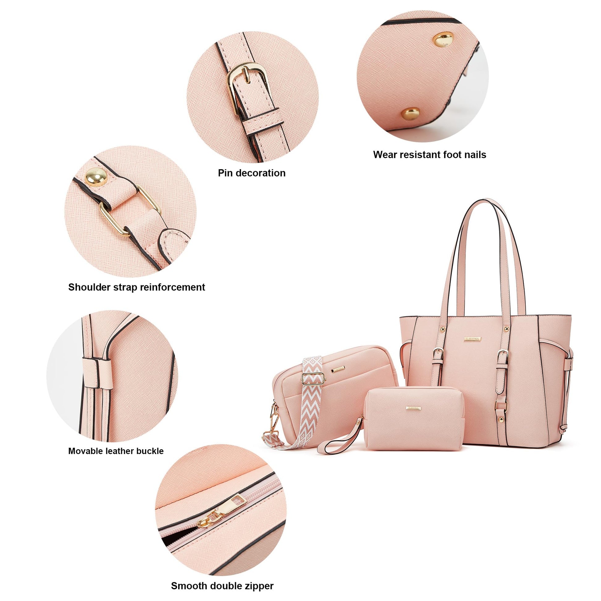 - Dimension: Large handbag: Top Width: 40CM,Bottom Width:30CM. Height: 27CM, Depth: 13CM. Crossbody Bag: Width: 26CM, Height: 15CM, Depth:8CM. Cosmetic Bag: Width:19CM, Height:13CM, Depth:7CM. Total weight: About 0.95kg.Please you can refer to the size before you buy it. Thank you.