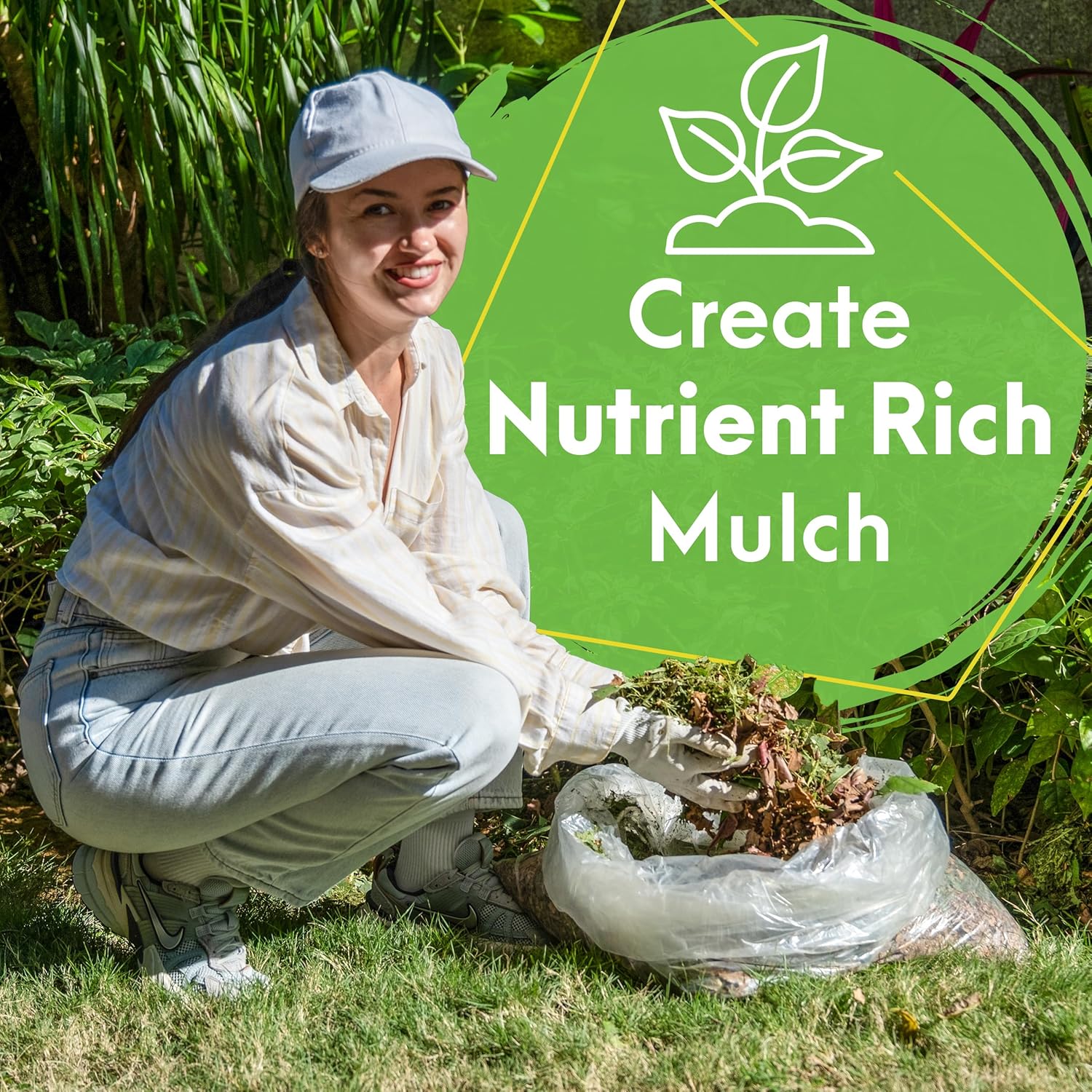 - BRILLIANTLY BLADELESS: No dangerous blades here, shred and mulch leaves using the extra strong 10 gauge nylon cutting lines. Easily change cutting lines without tools for super simple maintenance, with 20 additional lines included.