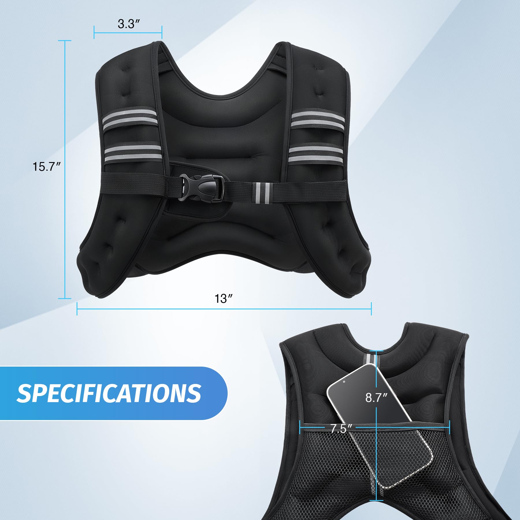 - Faster Fitness Gains: Zelus weighted vests (6/8/12/16/20/25/30 lb) feature evenly distributed iron sand to add extra resistance to your daily workout. They provide a simple way to push yourself harder without the need for bulky gear in your routine
